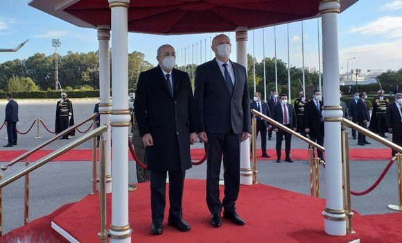 Les Présidents Abdelmadjid Tebboune et KaïsSaïed ont écouté les hymnes nationaux des deux pays avant de passer en revue un détachement militaire qui leur a rendu les honneurs, au moment où les 21 coups de canon retentissaient en l’honneur de l’invité de marque de la Tunisie.