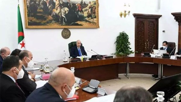 « Le président de la République, M. Abdelmadjid Tebboune, chef suprême des Forces armées, ministre de la Défense nationale a présidé, dimanche 10 avril 2022, une réunion du Conseil des ministres consacrée à la présentation d’un exposé sur la situation et les prévisions de production des céréales, la mise en œuvre du programme complémentaire au profit de la wilaya de Khenchela, au taux de suivi du projet de Phosphate, outre l’adoption de l’accord relatif à l’enseignement de la langue arabe dans les écoles primaires en France, en sus d’un projet de loi relatif aux relations de travail.
