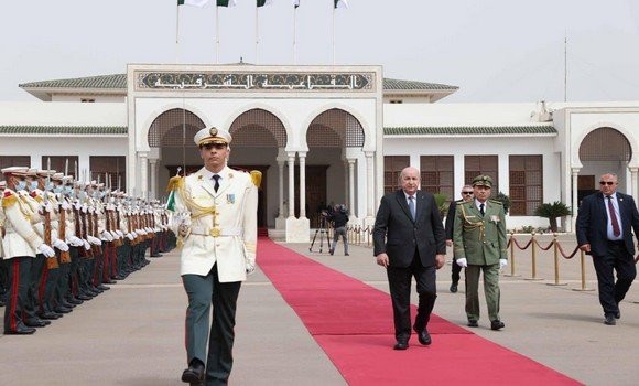 Après avoir écouté l’hymne national, le Président Tebboune a passé en revue une formation de la Garde républicaine qui lui a rendu les honneurs à l’aéroport international d’Alger « défunt Président Houari-Boumediene ». Le Président de la République a été salué à son départ, par le Premier ministre, M. Aïmene Benabderrahmane, le Général d’Armée Saïd Chanegriha, Chef d’Etat-Major de l’Armée nationale populaire (ANP) et le Directeur de cabinet à la Présidence de la République, M. Mohamed Ennadir Larbaoui.