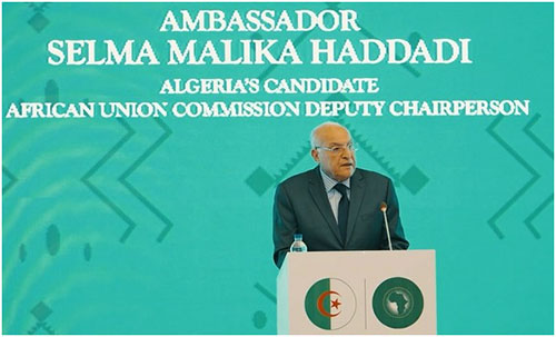 Il a ajouté que son riche parcours et sa connaissance approfondie des affaires africaines et internationales se reflètent dans son expérience précieuse dans les différents postes qu’elle a occupés, tant en Algérie, en qualité de Directrice générale des affaires africaines, qu’au sein des différentes missions diplomatiques en Afrique, y compris au Kenya et à Addis-Abeba, et dans d’autres centres diplomatiques multilatéraux, dont le Bureau des Nations Unies à Genève. Le ministre a souligné que l’ambassadrice Haddadi œuvrera pleinement, si elle est élue, à garantir que la Commission de notre organisation continentale fonctionne selon les meilleures normes de gestion en matière de ressources humaines et financières, affirmant qu’elle « apportera à la Commission l’énergie nécessaire, la dynamique et la compétence requises pour une gestion plus efficiente et plus efficace en vue de libérer le potentiel immense de l’Afrique que nous voulons et que nous chérissons ».