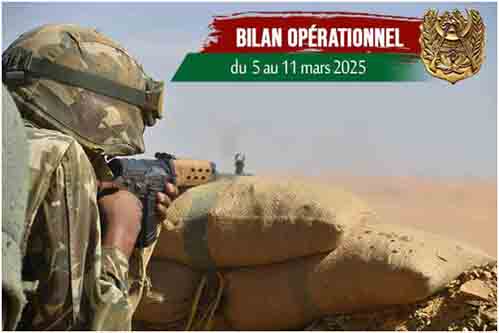 « Dans la dynamique des efforts soutenus dans la lutte antiterroriste et contre la criminalité organisée multiforme, des unités et des détachements de l’Armée nationale populaire ont exécuté, durant la période allant du 5 au 11 mars 2025, plusieurs opérations ayant abouti à des résultats de qualité qui reflètent le haut professionnalisme, la vigilance et la disponibilité permanente de nos Forces Armées à travers l’ensemble du territoire national », précise la même source. Dans le cadre de la lutte antiterroriste, des détachements de l’ANP « ont arrêté (6) éléments de soutien aux groupes terroristes dans différentes opérations à travers le territoire national ». Dans le cadre de la lutte contre la criminalité organisée et « en continuité des efforts soutenus visant à contrecarrer le fléau du narcotrafic dans notre pays, des détachements combinés de l’ANP ont intercepté, en coordination avec les différents services de sécurité, lors d’opérations exécutées à travers les Régions militaires, (50) narcotrafiquants et mis en échec des tentatives d’introduction de (9) quintaux et (5) kilogrammes de kif traité provenant des frontières avec le Maroc, alors que (2 954 228) comprimés psychotropes ont été saisis ». A Tamanrasset, Bordj Badji Mokhtar et In Guezzam, des détachements de l’ANP « ont arrêté (145) individus et saisi (56) véhicules, (191) groupes électrogènes, (139) marteaux piqueurs, (7) détecteurs de métaux, ainsi que des quantités de mélange d’or brut et de pierres, d’explosifs, d’outils de détonation et d’équipements utilisés dans des opérations d’orpaillage illicite ». De même, « (31) autres individus ont été arrêtés et un (1) pistolet automatique, (6) fusils de chasse, (48 470) litres de carburants, ainsi que (14) tonnes de tabacs et (116) tonnes de denrées alimentaires destinées à la contrebande et la spéculation ont été saisis, et ce, lors de différentes opérations ». Par ailleurs, « (417) immigrants clandestins de différentes nationalités ont été arrêtés à travers le territoire national », conclut le bilan opérationnel de l’ANP.